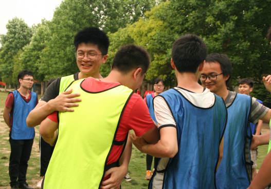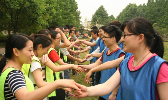 站在1.4米的跳台上直挺挺地向后倒下,台下方的同事会用手托起成一个“人床”把摔下的我接住,我在倒下去那一刻的恐惧瞬间烟消云散,我感受到了真正的团队。